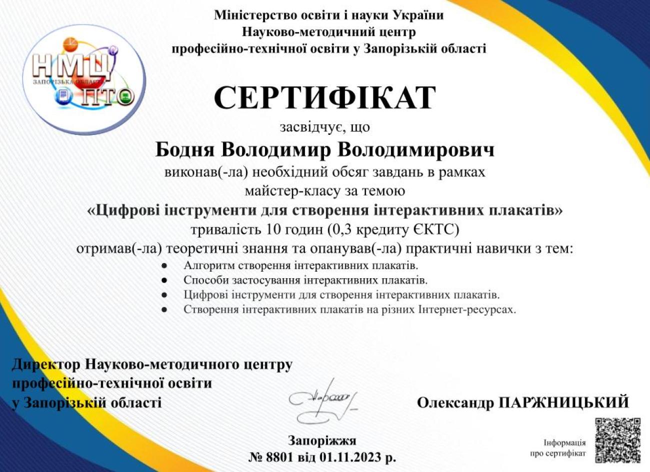 Сертифікат: «Цифрові інструменти для створення інтерактивних плакатів» - 10 год/0.3 ЄКТС
